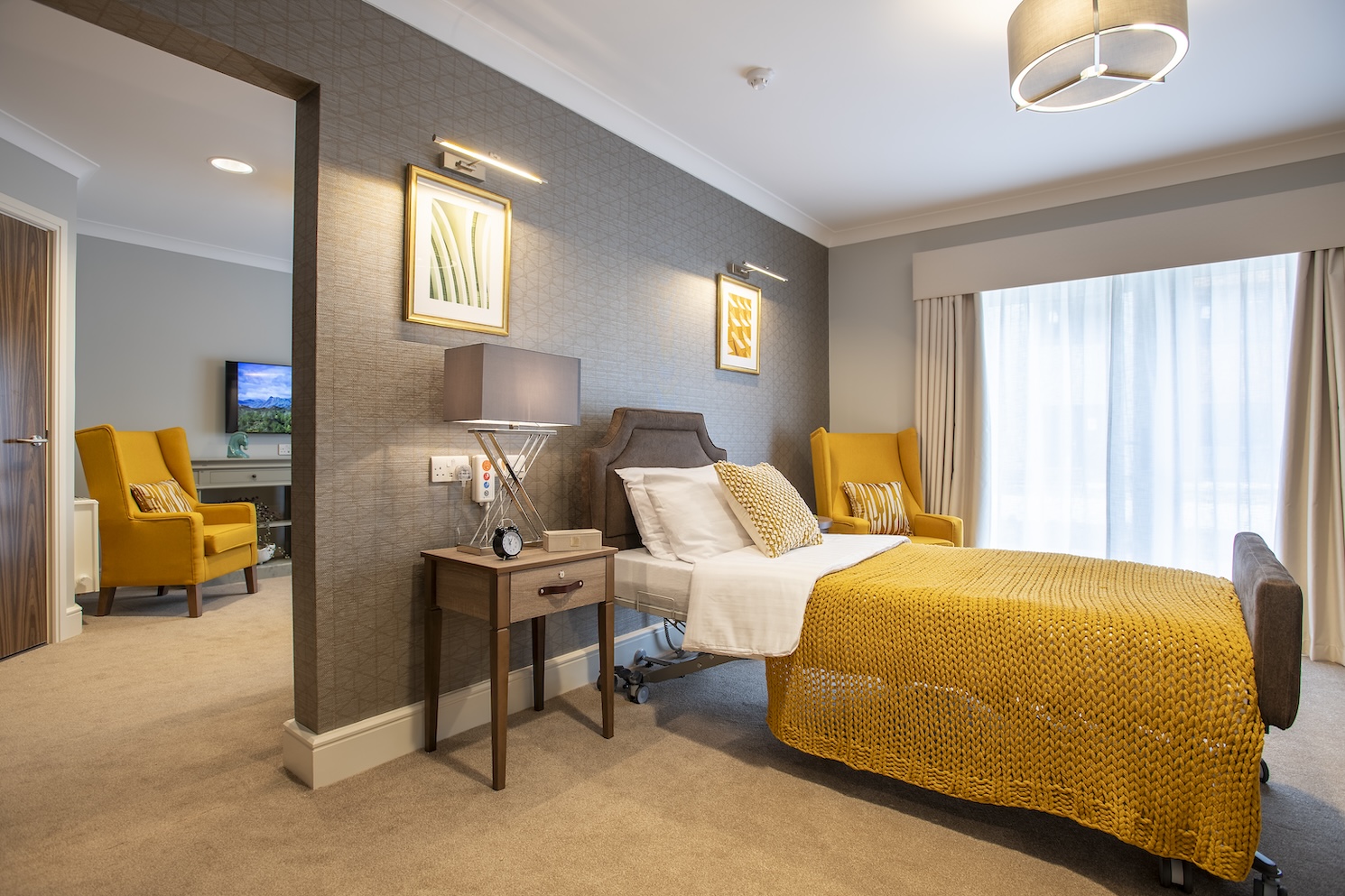 All bedrooms are bright, elegant and en-suite, with space for personal furniture or treasured belongings. Many families tell us that the calm, modern design helps their relative feel comfortable from the start. Room choices are available depending on care needs and preference.