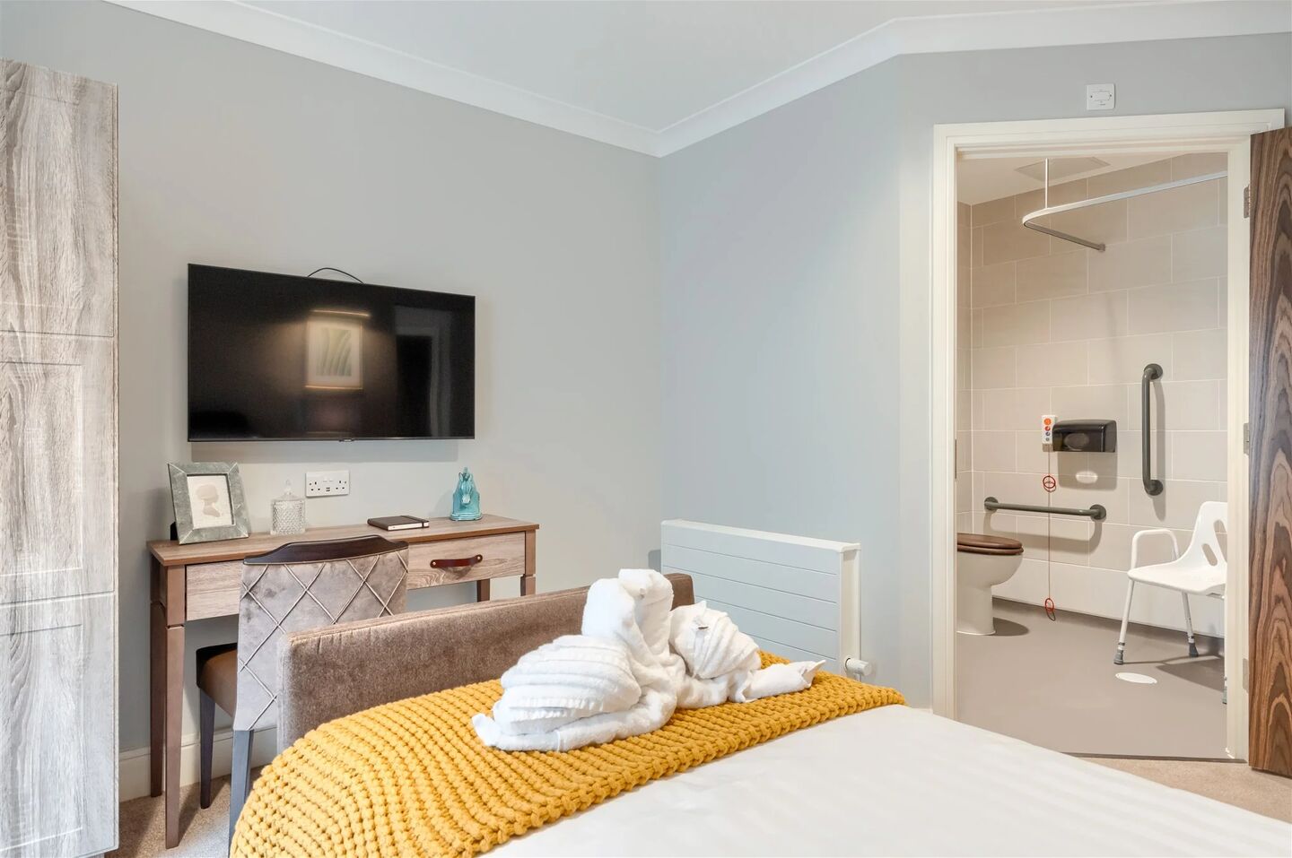 Our beautifully appointed en-suite bedrooms offer comfort, privacy and a calm place to unwind, with space to bring personal belongings and create a room that truly feels like home.